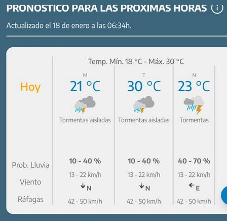 La máxima de las horas próximas podría anotar unos treinta grados centígrados contando con la probable presencia de lluvias.