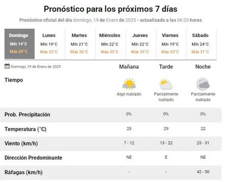 Esta información es suministrada por el Servicio Meteorológico Nacional para la localidad.