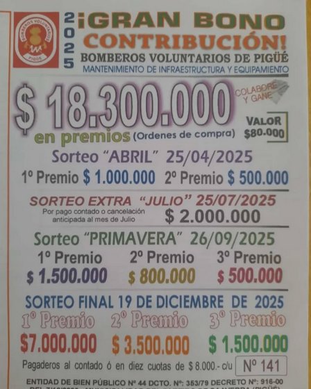 Venden el nuevo bono de Bomberos Voluntarios Pigüé