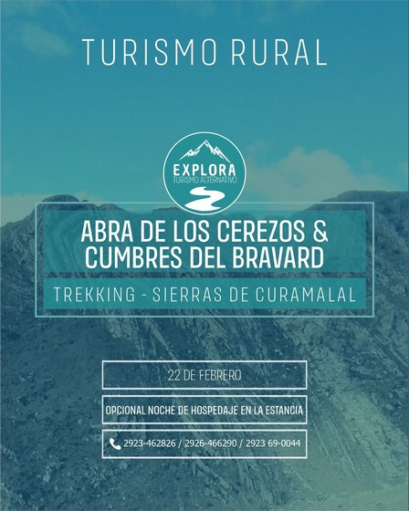 Para el sábado 22 de febrero están anunciando una salida al Abra de Los Cerezos & Cumbres del Bravard.