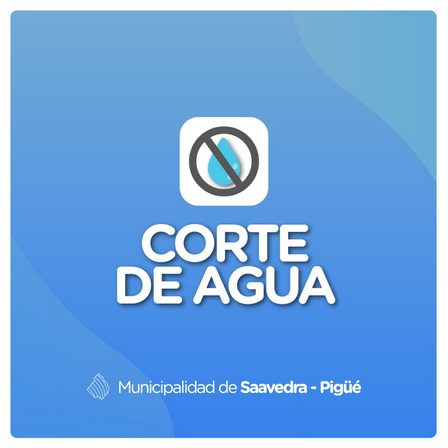 Obras Públicas del Municipio confirmó, hoy, jueves, por la tarde, que hay un corte de agua no programado en el sector del Barrio Jardín de Pigüé.