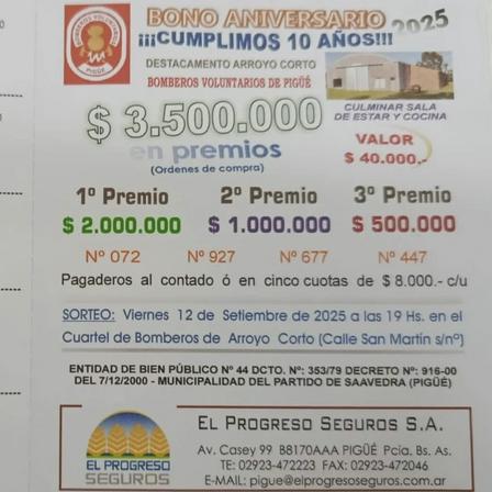 El integrante de Bomberos Voluntarios de Arroyo Corto comentó “tenemos casi todos vendidos. Si quieren algunos pueden comunicarse con algún miembro del cualquier”.