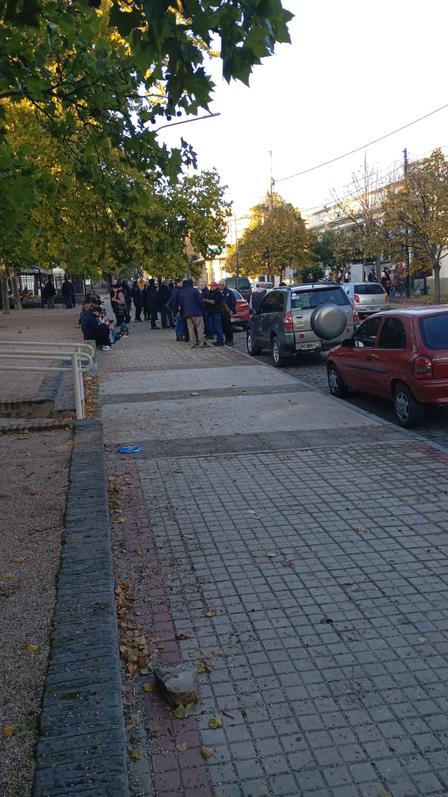 Frente al edificio del Honorable Concejo Deliberante tiene lugar este encuentro los trabajadores de la Comuna del Distrito de Saavedra.