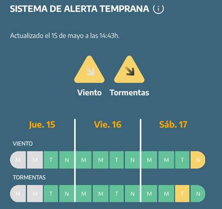 El Servicio Meteorológico Nacional advierte sobre vientos fuertes para el sábado por la noche.