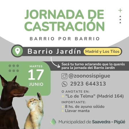 El martes venidero, por la mañana, habrá castraciones de mascotas en el salón de la Sociedad de Fomento del Barrio Jardín de Pigüé.