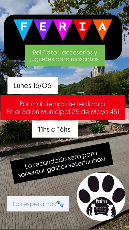 Esta feria de Patitas Pigüé se llevará a cabo el lunes, 16 de junio, desde las 11.00 hasta las 16.00 horas, en el Salón del Sindicato de los Trabajadores Municipales ubicado en calle 25 de Mayo 451 de la ciudad.