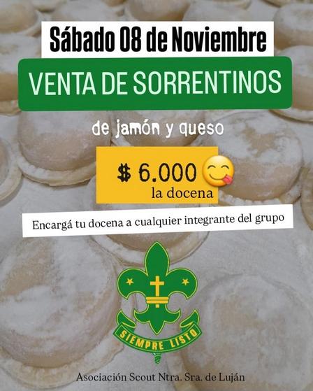 La docena de sorrentinos de jamón y queso, que pueden encargarse a los integrantes del grupo de la Asociación Scout Nuestra Señora de Luján de Pigüé, cuesta 6.000 pesos.