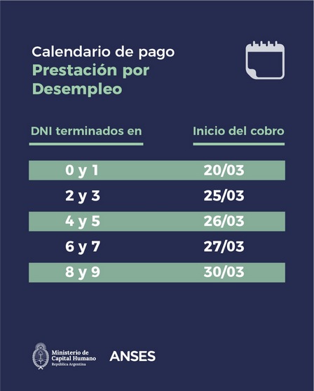 El jueves, mañana, la Asignación por Desempleo se abonará para quienes tienen DNI en números 4 y 5.