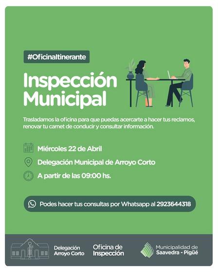 Los vecinos podrán acercar, por la mañana, a la Delegación Comunal, sus inquietudes, o bien enviar mensaje por WhatsApp al 2923 64 43 18 para que los inspectores puedan dar respuesta a las consultas.