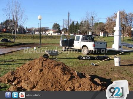 Están trabajando en la renovación de la Plaza de la Salud de Pigüé.