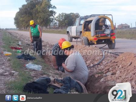 Trabajadores de la firma Termain desarrollan tareas en la obra de cloacas para Espartillar.