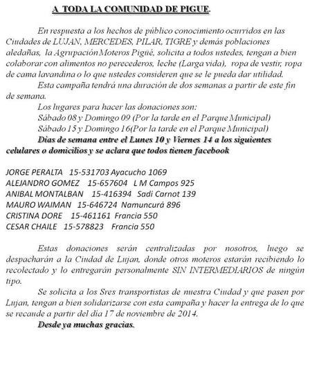 Las zonas del Gran Buenos Aires que sfufrieron inundaciones recibirán el apoyo de los Moteros de Pigüé.