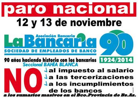 Los lemas dicen 'no al impuesto al salario, a las tercerizaciones, a los incumplimientos de los bancos'.