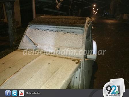 Durante la noche del sábado, en la localidad, se da la caída de nieve acompañado de viento frío.