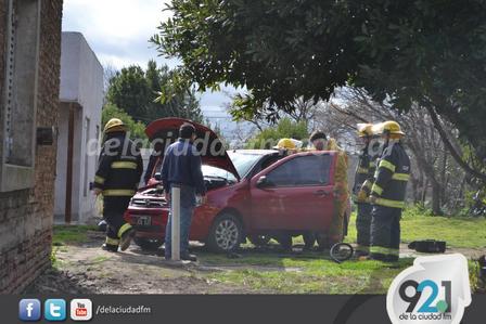 En un patio de una vivienda de calle Conesa al 700 de la ciudad se registró el principio de incendio en un Fiat Palio.