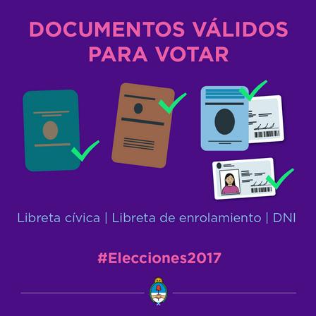 El elector puede votar presentándose con libreta de enrolamiento o libreta cívica siempre que no haya gestionado el DNI. También podrá votar si se presenta, por ejemplo, con un DNI triplicado y en el padrón figura que se le otorgó un duplicado. No podrá hacerlo, cuando se presente a votar con un DNI libreta verde, habiendo gestionado el nuevo DNI tarjeta.