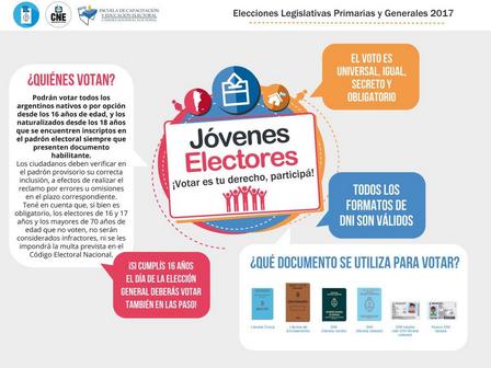 Podrán votar todos los argentinos nativos o por opción desde los 16 años de edad y los naturalizados desde los 18 años que figuren en el padrón.