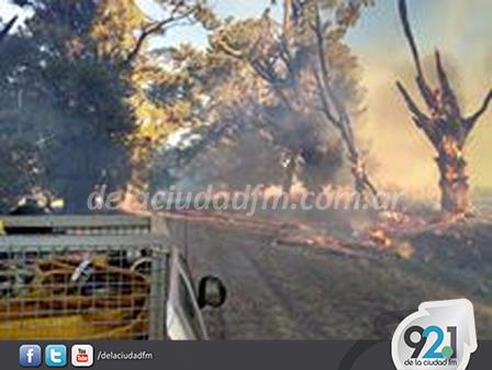 Trabajaron en ese establecimiento los móviles 8,15, 16 y 18, ya que, por varias horas debieron contener el fuego que afectaba un monte de pinos y otros árboles.