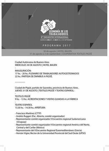 A las 13.30 horas del día de hoy, jueves, arranca en Pigüé el Sexto Encuentro Internacional "La Economía de los/as Trabajadores/as".