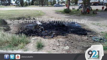 Los Bomberos de Pigüé trabajaron para combatir el incendio de neumáticos.