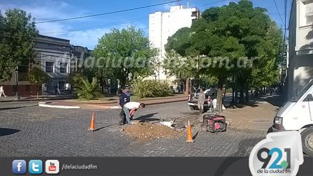 En el cruce de Avenida Eduardo Casey esquina Avenida Clemente Cabanettes se produce una tarea de reparación.