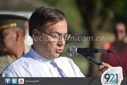 El religioso a cargo de la bendición en la ceremonia como Capellán de la Guarnición Militar Pigüé manifestó “te pedimos por quienes participaron, por nuestros hermanos caídos en el combate”.