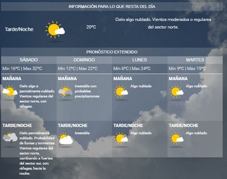 Esperan, para el fin de semana, 32º con vientos cambiando a fuertes del sector sur con ráfagas hacia la noche.