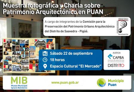 Esta actividad, junto a una muestra fotográfica, se hará en el Centro Cultural El Mercado de Puan.