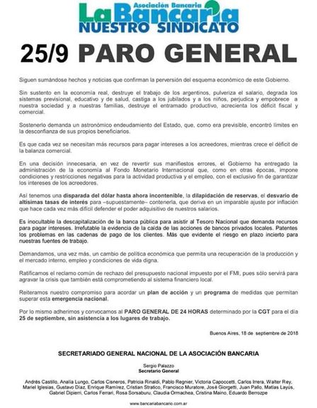 La Bancaria anunció un paro