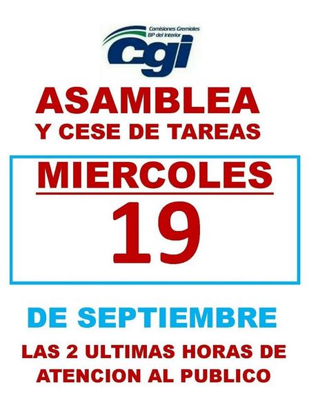 Con cese de tareas se llevarán a cabo hoy asambleas, en las últimas dos horas de trabajo, para los integrantes de La Bancaria.