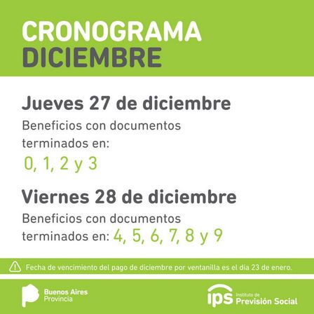 El Instituto de Previsión Social dio a conocer el cronograma de pagos correspondiente a diciembre.