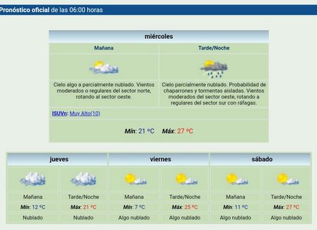 Para hoy se prevén lluvias en la localidad acompañadas de vientos soplando desde el este.