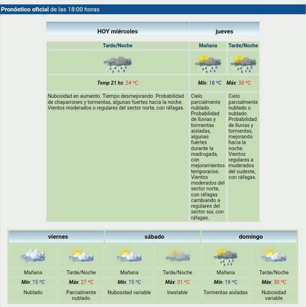 Para las últimas horas del miércoles, al igual que para el jueves, se anuncian lluvias.
