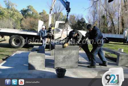 Según le indicaron a FM de la Ciudad, en el Parque Municipal de Pigüé, se colocan mesas y bancos de hormigón armado sobre una platea, con parrilla e iluminación a la vera del arroyo.