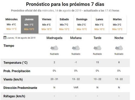 Para el día de hoy, jueves, el Servicio Meteorológico Nacional, advierte sobre la presencia de trece grados de máxima.