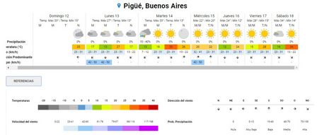 La sensación térmica, a esa misma hora, era de 16º en Pigüé.