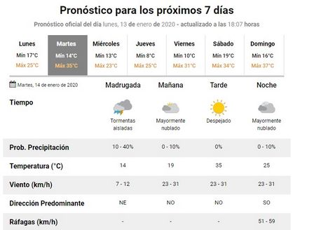 Este martes, por la tarde, la temperatura máxima podría alcanzar los treinta y tres grados en Pigüé.