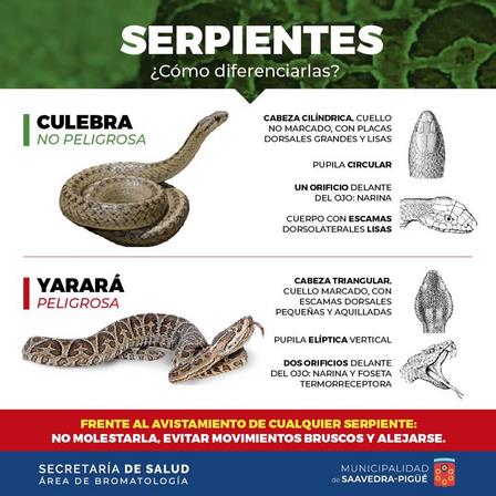 El mensaje de la Comuna expresa que "con la llegada del verano y las altas temperaturas, en el sudoeste bonaerense suelen aparecer diferentes especies de serpientes.