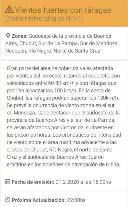 El alerta fue emitido hoy por la tarde a través del Servicio Meteorológico Nacional.