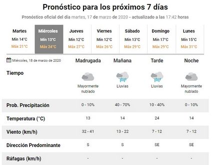 El Servicio Meteorológico Nacional anunció 24º de máxima para el miércoles