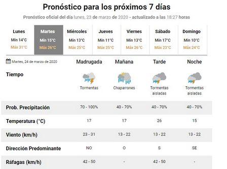 El registro de hoy, martes, podría contar también con algunas lloviznas leves en Pigüé.