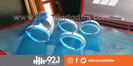 Los nuevos protectores faciales fueron recibidos por integrantes del Cuerpo Activo de Bomberos Voluntarios de la localidad.