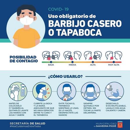 A través de un instructivo que está siendo difundido ahora la Secretaría de Salud llama a lavarse las manos, cubrirse nariz y boca, asegurarse que no haya espacios entre el rostro y el tapabocas, y evitar tocarlo.