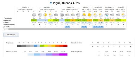 El Servicio Meteorológico Nacional advierte sobre la presencia de dieciocho grados, esta tarde, en Pigüé.