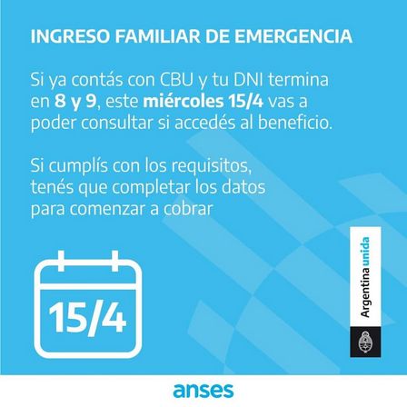 El Ingreso Familiar de Emergencia tendrá hoy la posibilidad de dar más detalles a quienes cuenten con DNI finalizado en 8 o en 9.