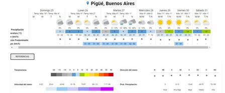 Este lunes, en la localidad de Pigüé, a la misma hora, la sensación térmica marcaba dos grados bajo cero.