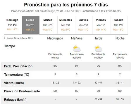 Hoy, de acuerdo a las mediciones del Servicio Meteorológico Nacional, la mínima del suelo fue de 5 grados bajo cero.