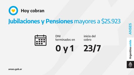 Las sucursales bancarias habilitadas atenderán por ventanilla a jubilados, jubiladas, pensionados y pensionadas que tengan haberes entre 25.923 pesos y 155.203 pesos y sus documentos terminen en 0 y 1.