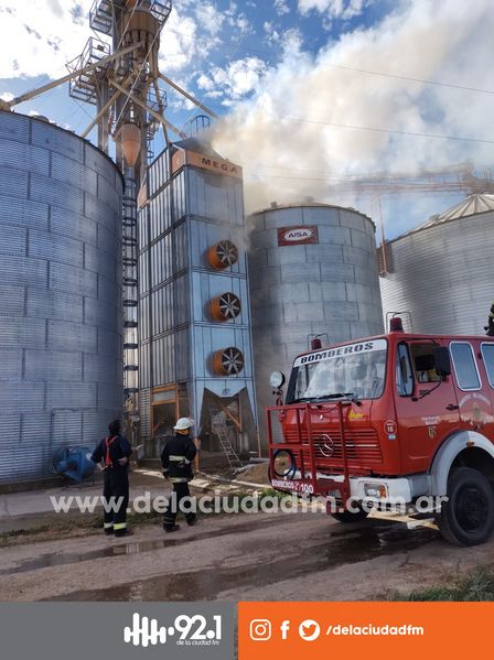 Esta tarde los servidores públicos fueron convocados para trabajar en el siniestro que afectaba a una secadora de una planta cerealera.