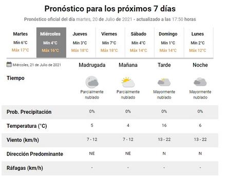 El Servicio Meteorológico Nacional anunció una máxima de 16º en la localidad.